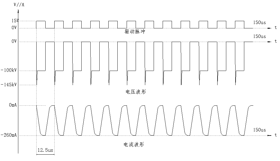 ②放电波形满足没有驰豫态的完整汤生放电曲线。汤生放电曲线被认为衡量是否达到标准电浆状态的核心指标。好值靓电浆电源的工作频率是80kHz,并且实现直流脉冲方波输出形式。